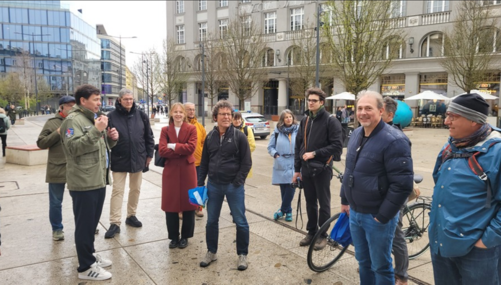 Dzień rozpoczął się od spaceru po historycznym centrum Warszawy. Była to pierwsza okazja, by „poczuć” miasto i zobaczyć, jak jego burzliwa historia wciąż odciska się na współczesnym krajobrazie. Uczestnicy odwiedzili Stare Miasto wraz z Zamkiem Królewskim, czyli obszar wpisany na listę UNESCO, będący symbolem odbudowy miasta po zniszczeniach II wojny światowej. Trasa prowadziła również przez najważniejsze przestrzenie publiczne stolicy, takie jak Plac Piłsudskiego czy tereny nad Wisłą, ukazując Warszawę jako miasto, które w naturalny sposób łączy pamięć o przeszłości z nowoczesnym podejściem do planowania przestrzennego i jakości życia mieszkańców.
