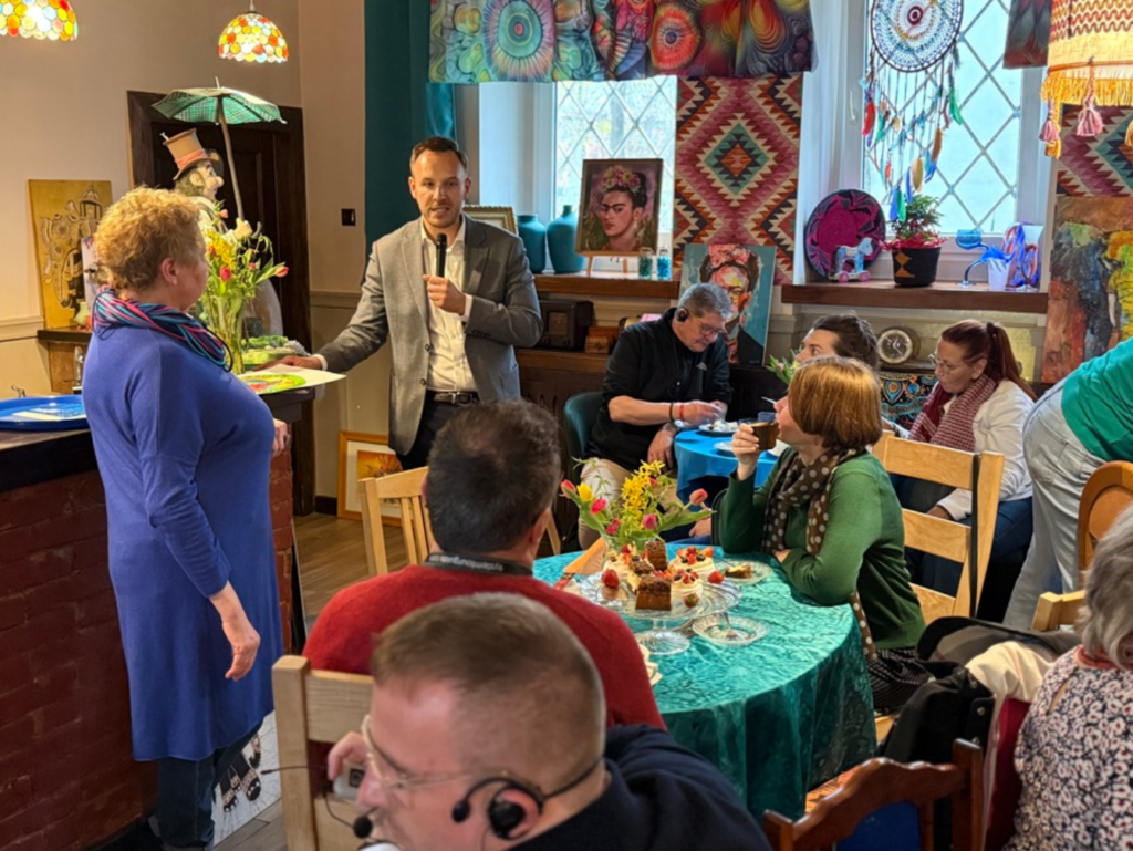 Duże zainteresowanie wzbudziła wizyta w kawiarni społecznej „Słoń w Kafce”. To miejsce, w którym codzienność spotyka się z aktywnością społeczną, a lokalne inicjatywy budują relacje i wzmacniają poczucie wspólnoty. Rozmowy dotyczyły roli takich oddolnych działań w tworzeniu miasta dostępnego i wrażliwego na potrzeby różnych grup mieszkańców.